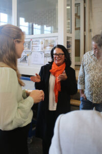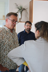Vor allem ging es um die Verknüpfung von Forschung und Lehre, und da gehörte ein Besuch bei Prof. Dr. Diederich Wermser natürlich zum Programm. Bis vor Kurzem war er Professor an der Ostfalia, hat sich aber nun von seiner Lehrtätigkeit zurückgezogen und kümmert sich ausschließlich um seine Unternehmensgruppe. Seine unterschiedlichen Ausgründungen machten den Grünen-Politikerinnen viel Freude: Bei Wermser geht es um Sensorik und Künstliche Intelligenz (KI). „Wir messen und steuern“, erklärte er der Besucherdelegation. „Auf diese Weise können wir zum Beispiel den Wasserverbrauch effizient regeln und viele Prozesse ressourcenschonend organisieren.“