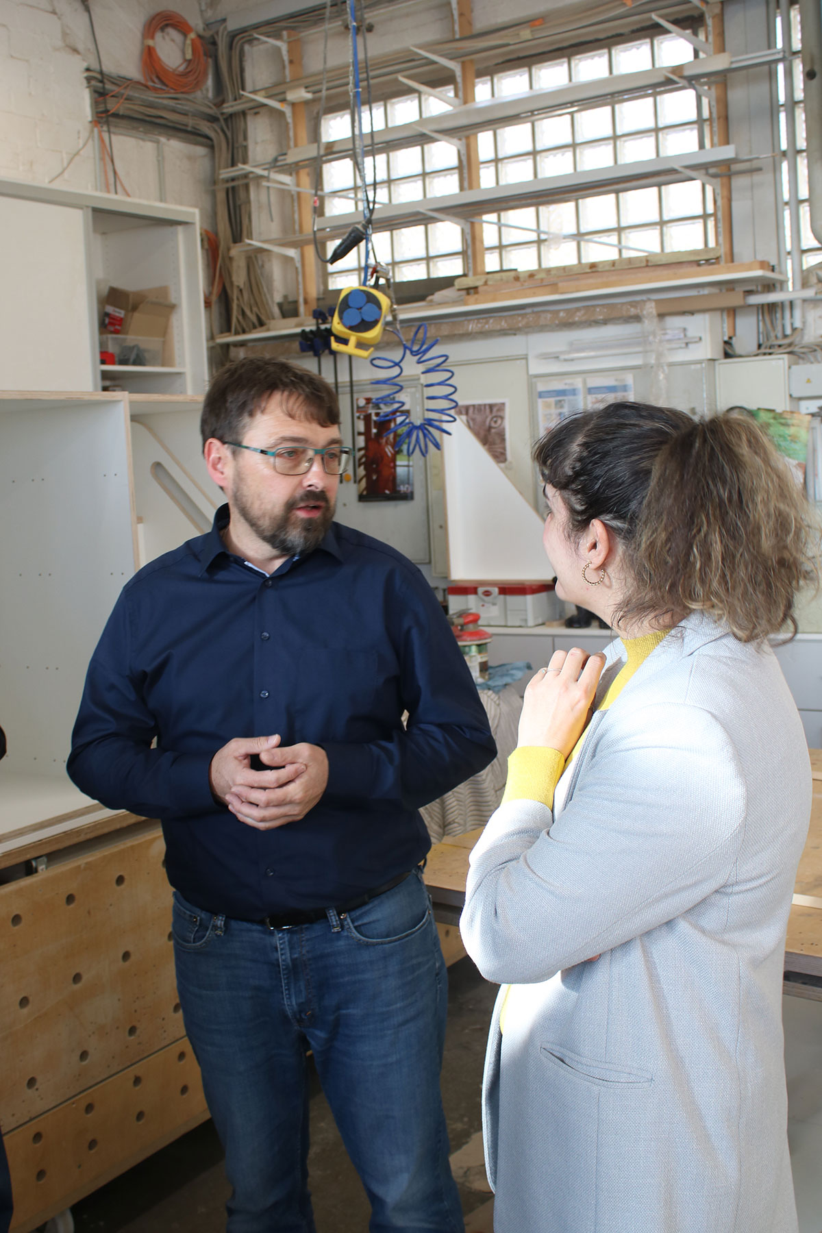 Neuer Inhaber ist Marco Schmidt, der ebenfalls an der Präsentation teilnahm. Vor allem die digitalen Möglichkeiten des Betriebes stießen auf Begeisterung. Auf diesem Gebiet sowie in der Werkstatt hatte Frank Bösche sein Geschäft durch Investitionen stets auf der Höhe der Zeit gehalten. Ergebnis: Interessante Möbel und individuelle Wohnraum-Lösungen werden auch künftig Am Exer entwickelt und gebaut.