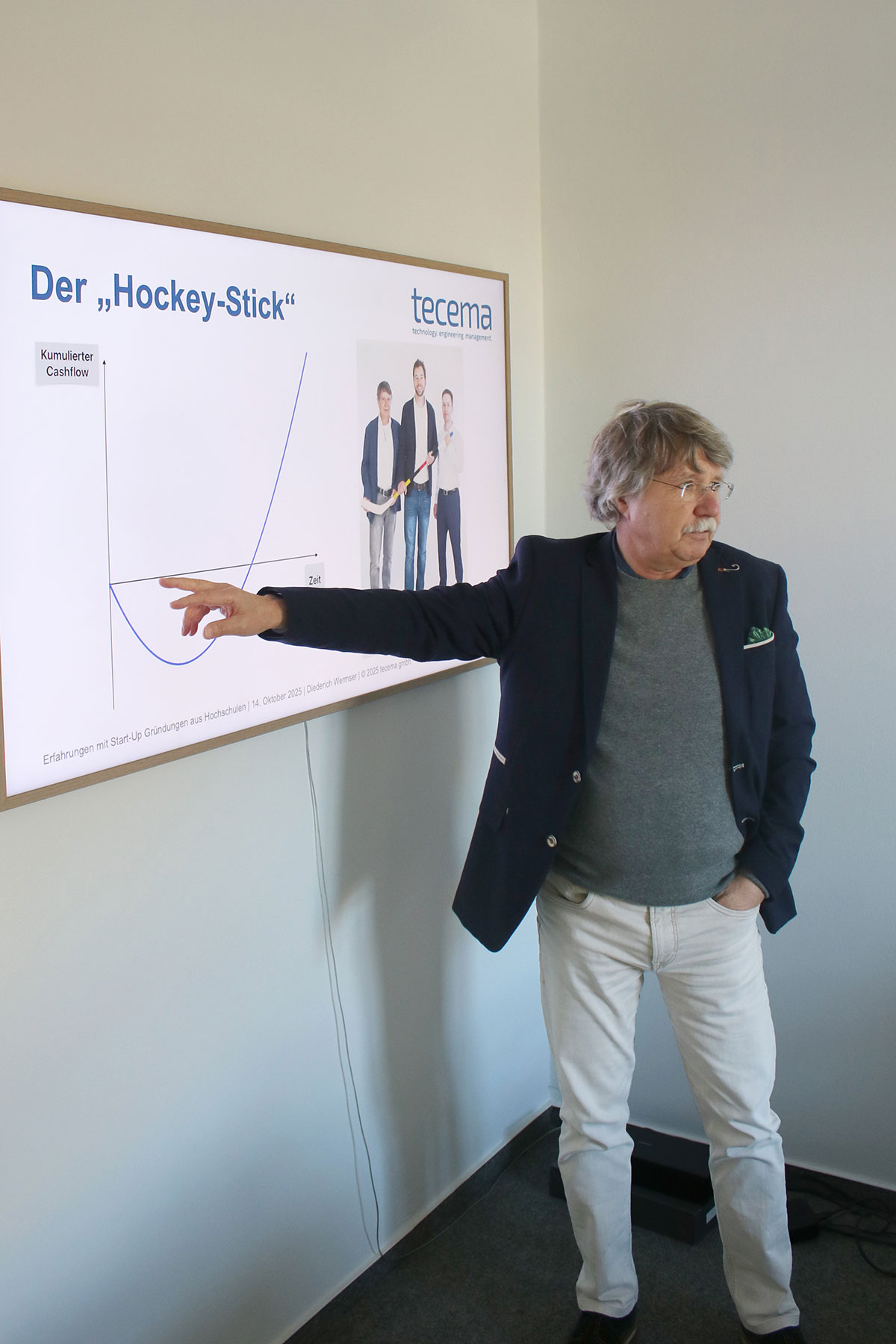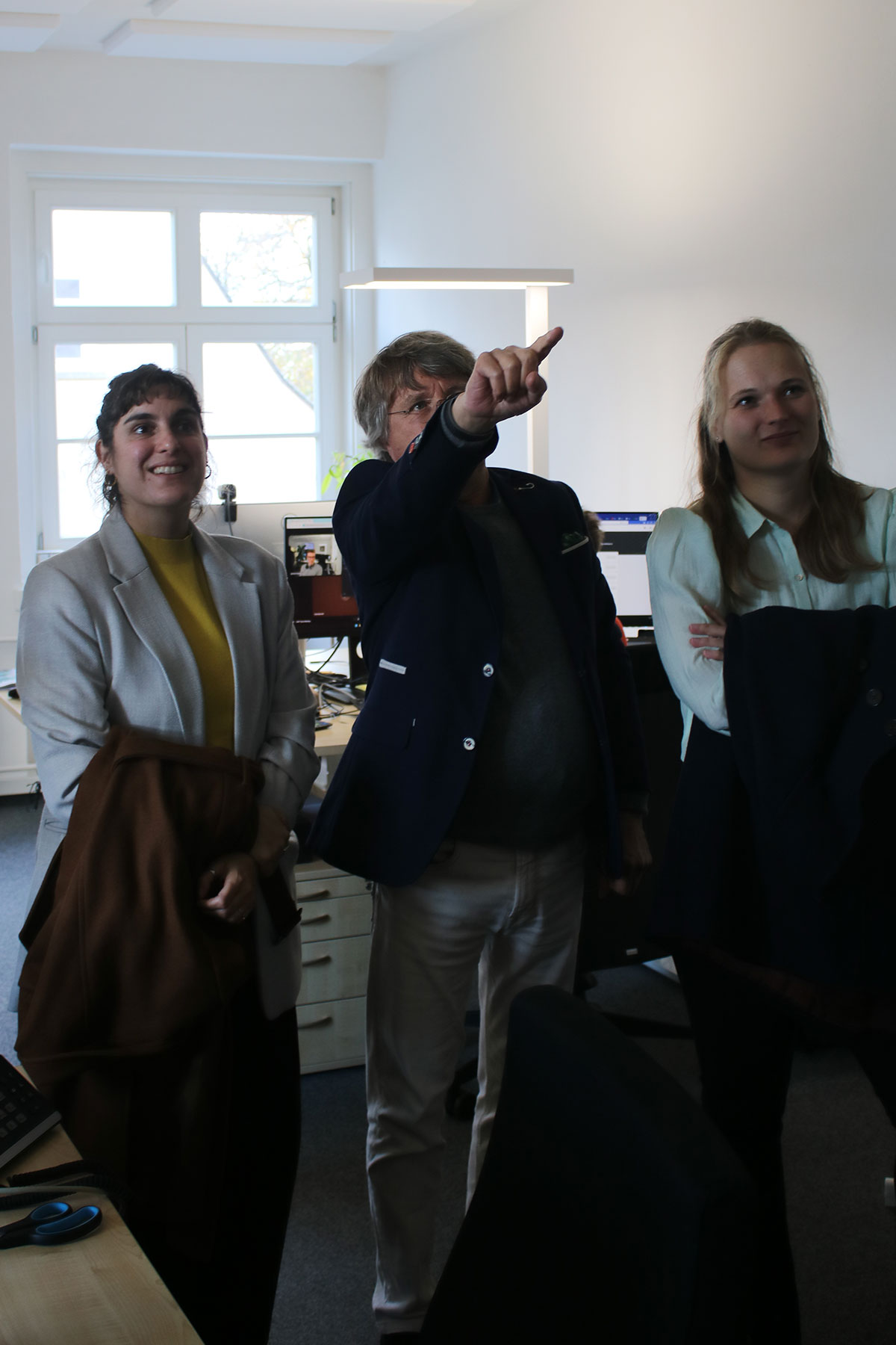 Vor allem ging es um die Verknüpfung von Forschung und Lehre, und da gehörte ein Besuch bei Prof. Dr. Diederich Wermser natürlich zum Programm. Bis vor Kurzem war er Professor an der Ostfalia, hat sich aber nun von seiner Lehrtätigkeit zurückgezogen und kümmert sich ausschließlich um seine Unternehmensgruppe. Seine unterschiedlichen Ausgründungen machten den Grünen-Politikerinnen viel Freude: Bei Wermser geht es um Sensorik und Künstliche Intelligenz (KI). „Wir messen und steuern“, erklärte er der Besucherdelegation. „Auf diese Weise können wir zum Beispiel den Wasserverbrauch effizient regeln und viele Prozesse ressourcenschonend organisieren.“